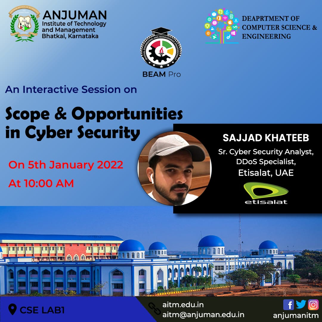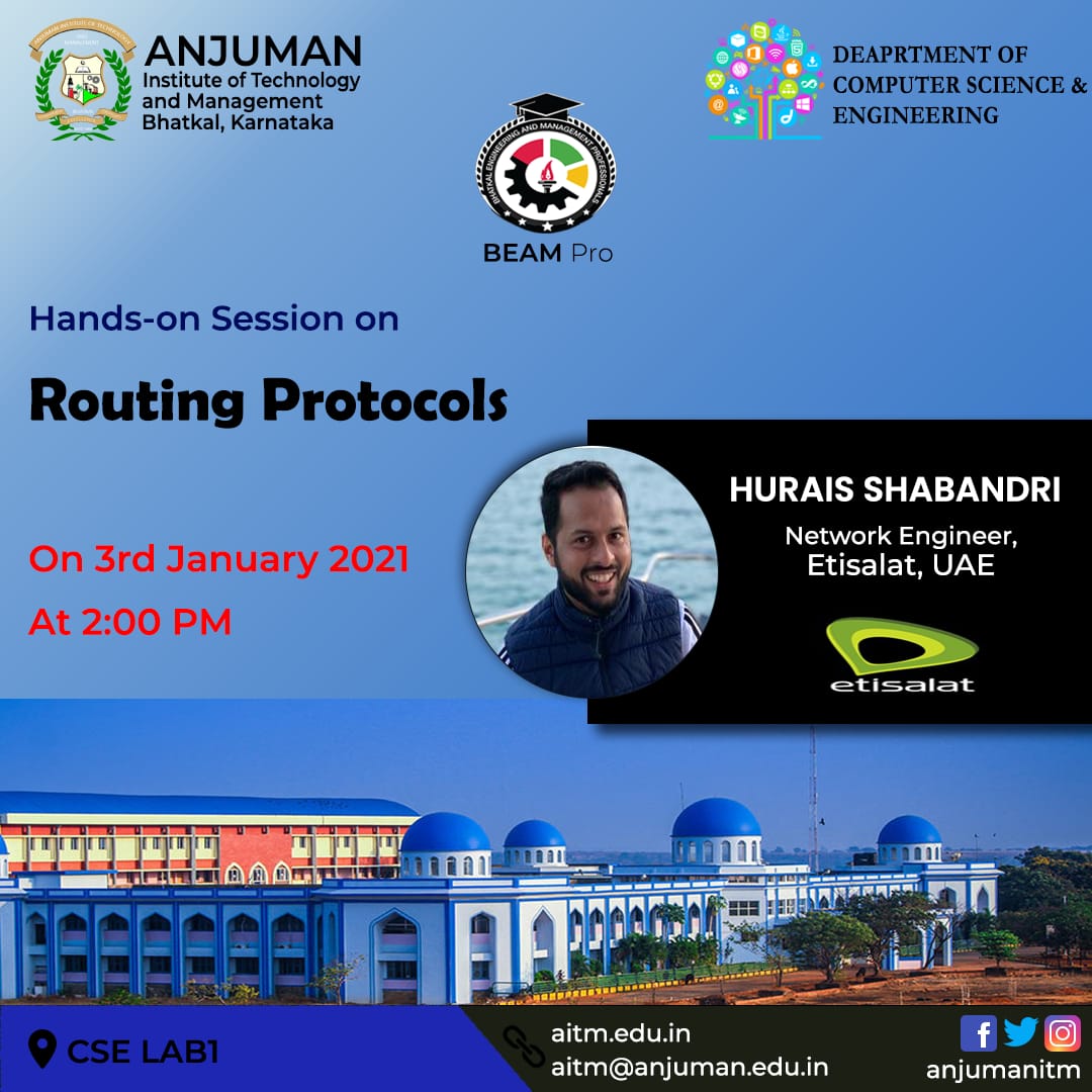 Hands-on Session on Routing Protocol and An interactive session on Scope and Opportunities in Cyber Security was conducted on 3rdJanuary 2022 and 5th January 2022. Mr. Sajjad Khateeb, Senior Cyber Security Analyst, Etisalat, UAE was the resource person.