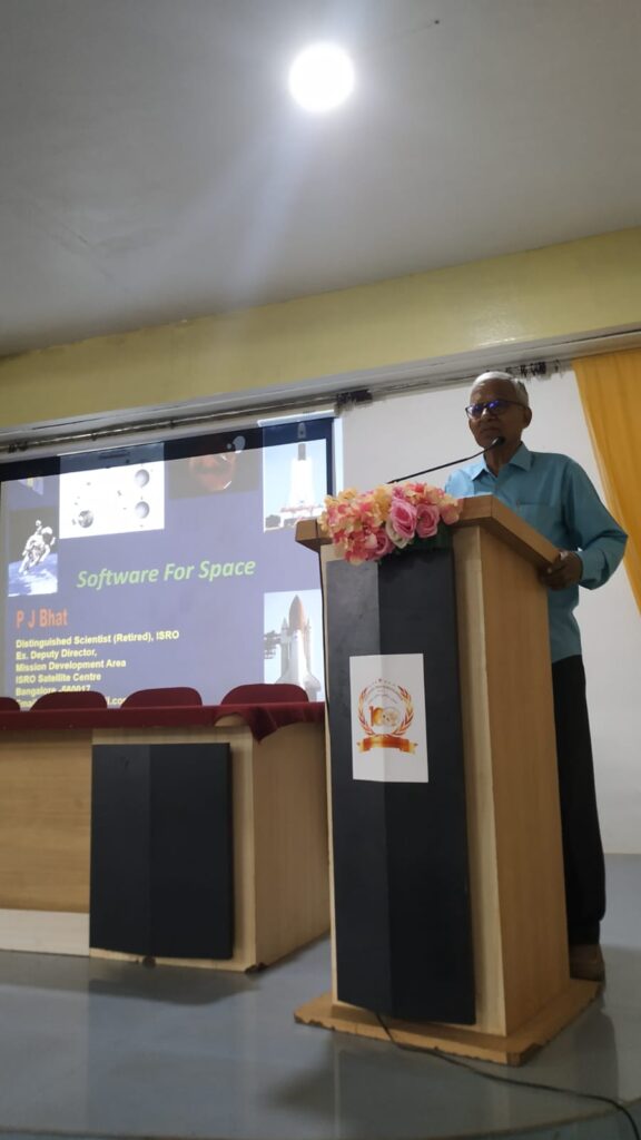 Department of Electronics and Communication Engineering organized an expert lecture on “Software for Space” on February 20th, 2023. The resource person for the lecture was Shri P. J. Bhat, Distinguished Scientist (Retired) from Indian Space Research Organisation (ISRO).