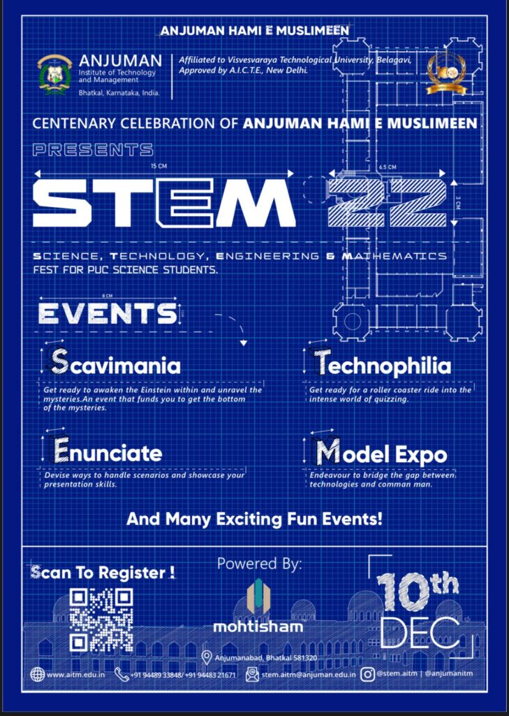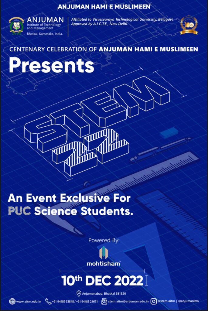Centenary Celebrations of Anjuman Hami E Muslimeen Presents STEM 2022. An Exclusive event for PUC Science Students on 10th December 2022